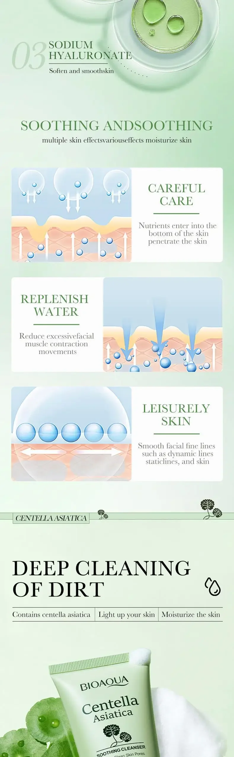 6pcs/Set BIOAQUA Centella Skin Care Sets Moisturizing Anti Wrinkle Face Cream Facial Cleanser Serum Toner Skin Care Products
